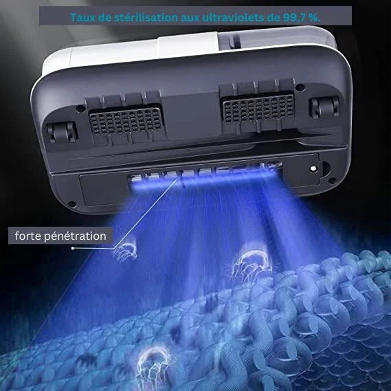 L'aspirateur de matelas est équipé d'une fonction de double impulsion, d'une fonction de vibration à haute fréquence combinée à une puissance d'aspiration de 12 kpa qui permet de nettoyer la poussière et la saleté en profondeur dans le matelas.