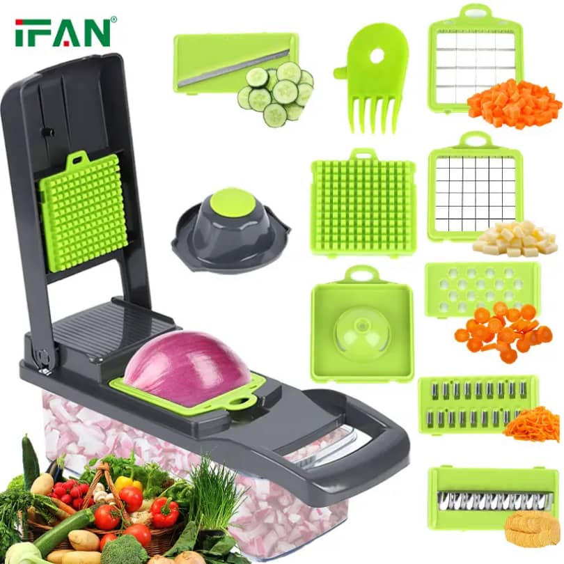 Avec notre coupe-légumes multifonction 14-en-1, préparez vos repas en un clin d’œil ! Rondelles, cubes ou juliennes, tout devient ultra-rapide et facile. Un seul outil, un maxmum d’efficacité.